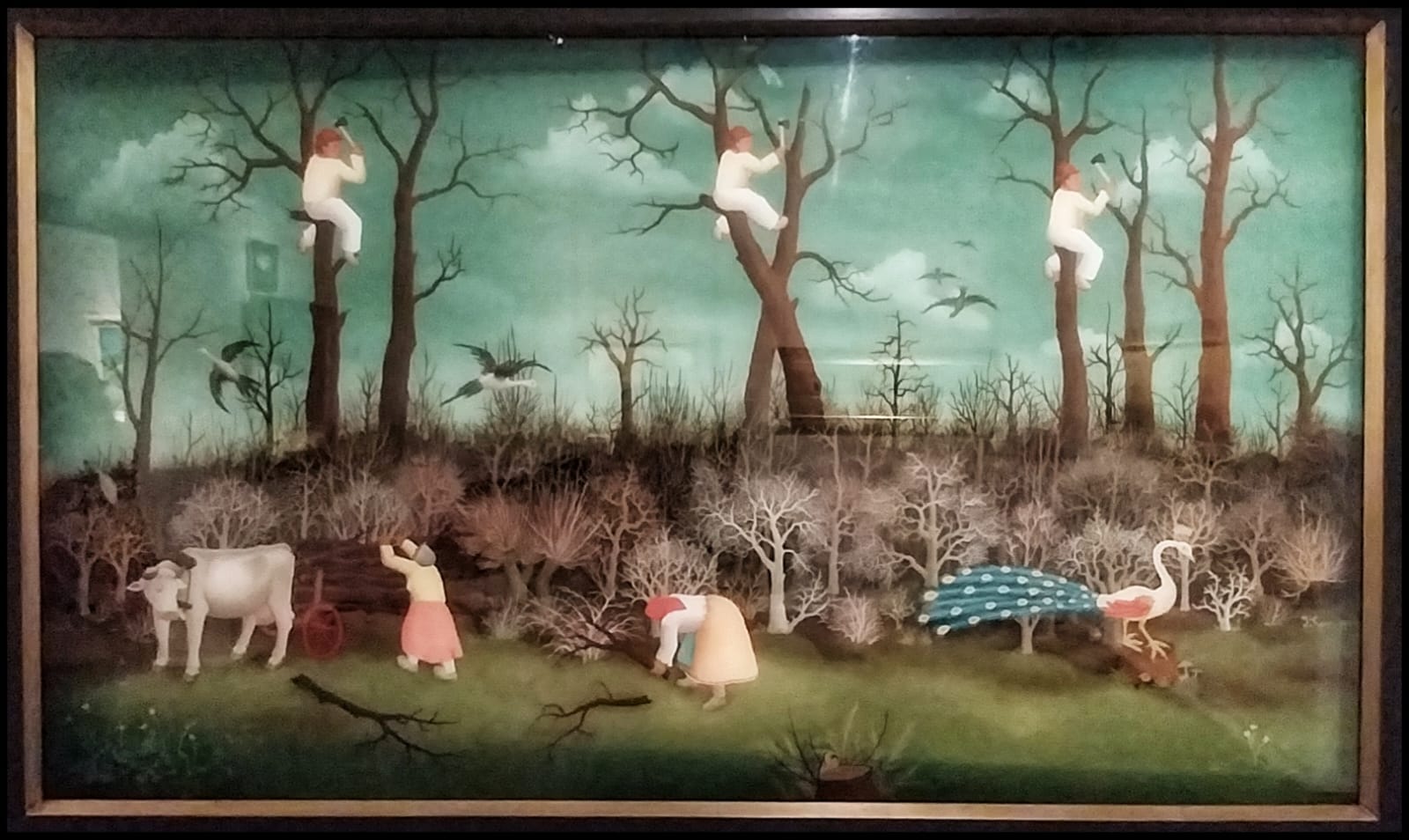 আদতেই সাধারণ কৃষক বা শ্রমিকের আঁকা ছবির প্রদর্শনী এই মিউজিয়ামে। যেমন ধরা যাক ইভান লাচকোভিচের কথা। প্রত্যন্ত গ্রামের কৃষক পরিবারে জন্ম। দারিদ্র্যের স্বাভাবিক নিয়মেই ইস্কুল শেষ করে শ্রমিক হতে হয় তাঁকে। কিন্তু ছবি আঁকার অদম্য নেশা ছেড়ে যায়নি কোনওদিন। ওঁর আঁকা ছবি ‘Trees Die Standing’ চমকিত করে। দেখি এক জায়গায় বলেছেন, “My paintings may not be beautiful, but they are just as life is, sometimes bitter and sad, and sometimes beautiful and joyful”। ইভান জেনেরালিচের জন্মও এমনই দরিদ্র কৃষক পরিবারে। গ্রামের ইস্কুলে পড়তে পেরেছেন মাত্র পাঁচ ক্লাস। তারপর জীবনের বেশীরভাগ সময় কেটেছে মাঠে-মাঠে গোচারণে অথবা কৃষিকাজে। কিন্তু ছবি আঁকার চিন্তা তাড়িয়ে বেরিয়েছে সবসময়। জেনারেলিচ বলছেন, “When I would go somewhere to the field to work or with the cows to pasture, whenever I had a little free time I’d take out a pencil and paper and draw something that instant”।