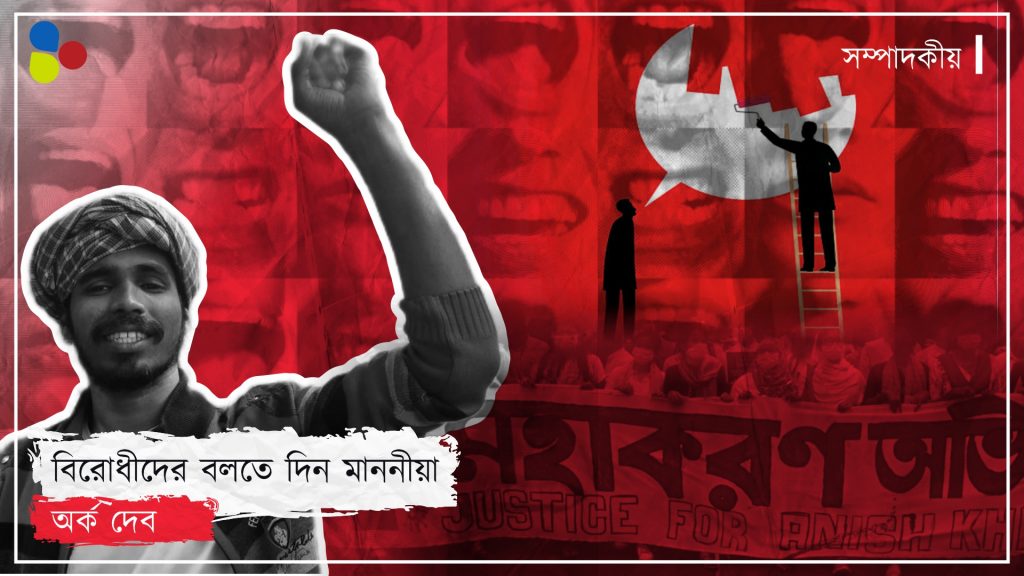সেই অধিকার প্রয়োগ করতেই আজ পথে নামছেন কেউ কেউ। পথে নামছে বিরোধীরা। বিশেষত বামমনস্ক পড়ুয়ারা। কিন্তু সেখানেও শাসক তার মুখোশ খুলে ফেলে আসল মুখ দেখাচ্ছে। আমরা শহিদ দিবসের ঘটনার কথা ভুলিনি। মহাকরণ অভিযান ছত্রভঙ্গ করতে পুলিশের ভূমিকা নিয়ে প্রশ্ন করায় জ্যোতি বসু যে ঔদ্ধত্য দেখিয়েছিলেন তা জনতার মধ্যে থেকে উঠে আসা এক প্রবাদপ্রতিম নেতার মুখ নয়, বরং এক শাসকের শক্ত চোয়াল- যিনি বিরোধিতা সহ্য করবেন না। ইতিহাস নিজেকেই বারবার পুনরাবৃত্ত করতে থাকে। আজও বিরোধীরা রাস্তায় নেমে সেই একই শাসককে দেখতে পাচ্ছে। আটকে দেওয়া হচ্ছে প্রতিবাদীদের নবান্ন অভিযান। পুলিশ দিয়ে তাদের ছত্রভঙ্গ করে নিয়ে যাওয়া হচ্ছে লালবাজারে। এই ধরনের কণ্ঠরোধ চেয়ে শাসককে ক্ষমতায় আনা হয়নি, এই সত্যিটা নাড়াচাড়া করার সময় এসেছে। বিরোধিতার গণতান্ত্রিক অধিকার হরণ সুনিশ্চিত হবে এই ভেবে তারা এত কসরৎ করল কি না, নাগরিক সমাজ নিশ্চয়ই নিজের আত্মা খুঁড়ে এই প্রশ্নের উত্তর খুঁজবে। রিজওয়ানুর কাণ্ডে পুলিশের ভূমিকা গোটা রাজ্যবাসীকে লজ্জিত করেছিল। আমরা কি সেই জায়গাতেই দাড়িয়ে আজও? পুলিশ কি স্রেফ শক্তিমানের হাতের পুতুল হয়েই থাকবে?