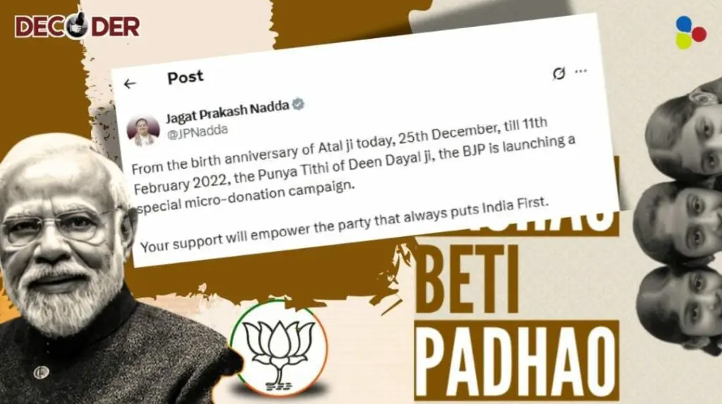 ২০২১-২২ সাল থেকে প্রধানমন্ত্রী নরেন্দ্র মোদির অফিসিয়াল নমো (NaMo) অ্যাপ এবং নরেন্দ্রমোদি.ইন (narendramodi.in)-এ অনুদান অভিযান চালানো হয়। সেই অভিযানের লক্ষ্য ছিল ‘micro-donation’ সংগ্রহ করা, অর্থাৎ সাধারণ মানুষকে ছোট ছোট পরিমাণে দান করতে উৎসাহিত করা। প্রচারে বলা হচ্ছিল, যে কেউ চাইলে দেশের তিনটি বড় সরকারি প্রকল্প— স্বচ্ছ ভারত অভিযান (Swachh Bharat Mission), বেটি বাঁচাও বেটি পাড়াও (Beti Bachao Beti Padhao) এবং কৃষক সেবা (Kisan Seva) বেছে নিয়ে দান করতে পারবেন। চাইলে 'পার্টি ফান্ড' নামে বিজেপির তহবিলেও দান করা যাবে। কিন্তু এই পুরো প্রক্রিয়ার মধ্যেই তৈরি হচ্ছিল একটি বড় বিভ্রান্তি।
