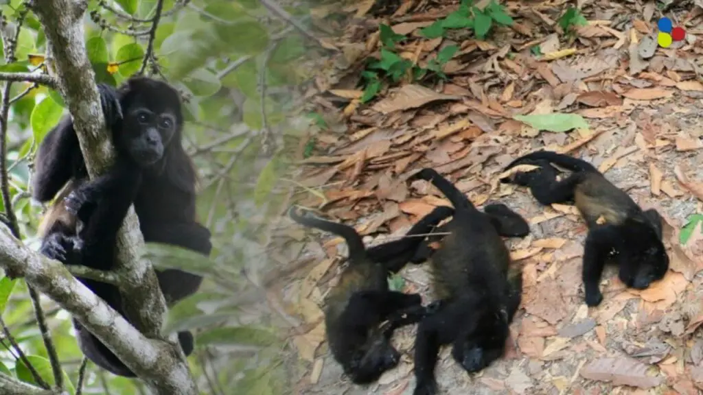 মেক্সিকোর কোমালকালকোতে গাছ থেকে পড়ে যাওয়ার পর বনের মেঝেতে মৃত অবস্থায় পড়ে আছে হাউলার বাঁদর। ছবি: রয়টার্স