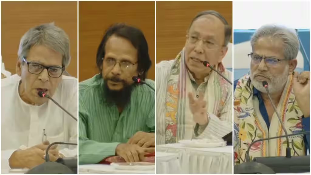 এ নিয়ে সর্বসম্মত একটি সিদ্ধান্তে পৌঁছতে নবান্নে সর্বদল বৈঠকের আয়োজন করেছিলেন মুখ্যমন্ত্রী। যেখানে উপস্থিত ছিলেন, ইতিহাসবিদ, শিক্ষাবিদ, বুদ্ধিজীবী থেকে শুরু করে সংবাদমাধ্যমের প্রতিনিধিরা। ডাকা হয় বিভিন্ন দলের প্রতিনিধিদেরও। যদিও সেখানে গড়হাজির ছিল সিপিএম, কংগ্রেস ও বিজেপি। অবশ্য সভায় যোগ দেন এসইউসি এবং সিপিআইএমএল (লিবারেশন)-র প্রতিনিধি।
