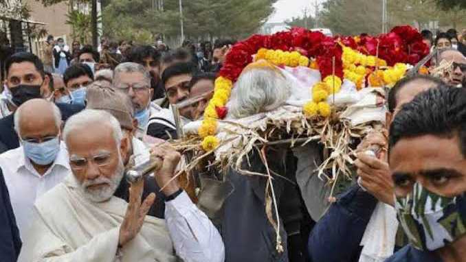 আজ তাঁর হাত কাঁপছে। আজ ভারতবর্ষের সবচেয়ে বড় নেতার হাত কাঁপছে। নরেন্দ্র মোদির হাত কাঁপছে। নিজের জীবনে বহু সাহসী সিদ্ধান্ত নিয়েছেন তিনি সম্পূর্ণ অবিচল থেকে। কিন্তু যত বড়ই নেতা হন না কেন, যতই সিংহ হৃদয় হন না কেন, মায়ের মুখাগ্নি করতে গেলে যেকোনও সন্তানেরই হাত কাঁপবে। সদ্য মা হারা হয়েছেন প্রধানমন্ত্রী নরেন্দ্র মোদি। মা হিরাবেন মোদির মৃত্যুর খবর পেয়ে পূর্বপরিকল্পিত সব কর্মসূচি বাতিল করে ইতিমধ্যেই আহমেদাবাদ পৌঁছেছেন প্রধানমন্ত্রী নরেন্দ্র মোদি। আজ বন্দে ভারত এক্সপ্রেসের উদ্বোধন এবং জাতীয় গঙ্গা পরিষদের বৈঠকে কলকাতায় আসার কথা ছিল মোদির। এছাড়াও শহরে আরও কয়েকটি কর্মসূচি ছিল প্রধানমন্ত্রীর। বলাই বাহুল্য, সেইসব কোনও কর্মসূচিতেই উপস্থিত থাকছেন না প্রধানমন্ত্রী। তবে বিজেপি সূত্রে খবর, শারীরিকভাবে উপস্থিত না থাকতে পারলেও হয়তো ভার্চুয়ালি কর্মসূচি পালন করতে পারেন প্রধানমন্ত্রী।