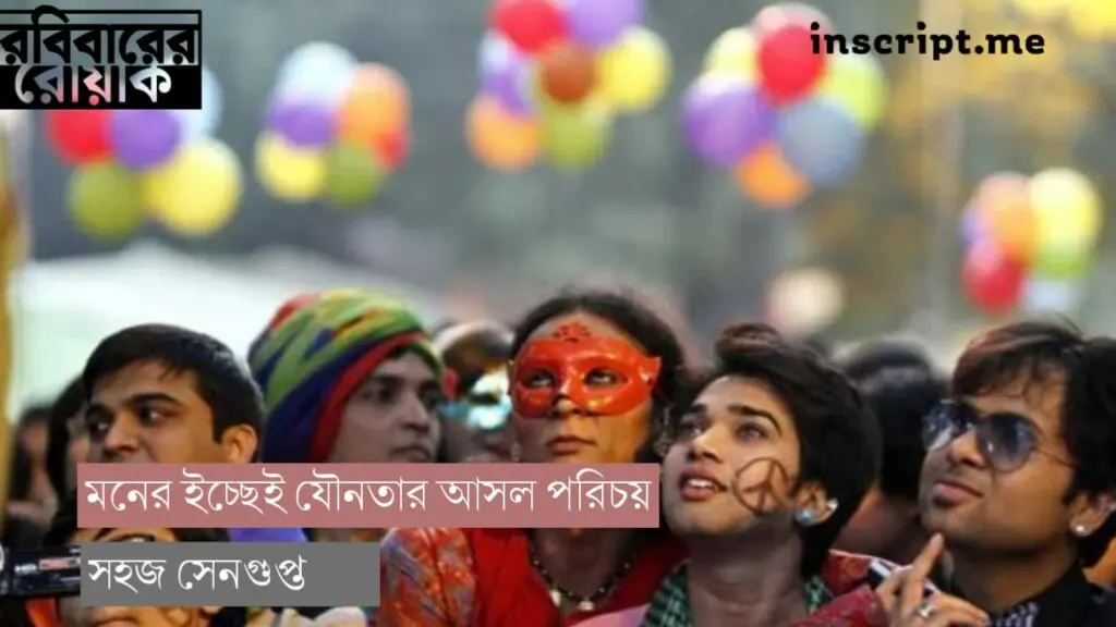 সহপাঠীদের আমার পেছনে চাটি মারা, আমার বুকে হাত দেওয়া কিংবা কোনো আত্মীয়ের আপত্তিকর স্পর্শ— এসব বিকৃত যৌনতাকে অতিক্রম করে প্রত্যেকের মতো আমার জীবনেও প্রেম এসেছে। পাড়ার এক দাদার সঙ্গে তখন রোজ কথা হয়। দাদাটা ওর সাইকেলে করে প্রত্যেক দিন আমাকে ঘুরতে নিয়ে যায়। একদিন দুপুরে ওর ফাঁকা বাড়িতে দুজন-দুজনকে নতুনভাবে আবিষ্কার করলাম আমরা। অঙ্গে-অঙ্গে আবিষ্কারের সে এক নাছোড়বান্দা সুখ। কিন্তু সবাই তো সুখী হতে পারে না। কিছুদিন পরেই আমার চোখের সামনে সেই দাদাটিরও বিয়ে হয়ে গেল। এরপরেও জীবনে কতবার প্রেম এসেছে, যৌন অভিজ্ঞতার সম্মুখীন হয়েছি। কিন্তু সেই ছোটবেলা থেকে আজ পর্যন্ত একটা বিষয় একই রয়ে গেছে। যারাই আমার জীবনে এসেছে, তারা আমার আত্মপরিচয়কে স্বীকৃতি দেয়নি। আমার শরীরের পরিচয়, আমার মনের পরিচয়ের থেকে ভিন্ন। শরীরের যেমন যৌনপরিচয় আছে, মনেরও তেমনই নিজস্ব যৌনপরিচয় রয়েছে। কেউই সেটা খেয়াল করে না। আবার যারা খেয়াল করে, তারা মানতে চায় না।