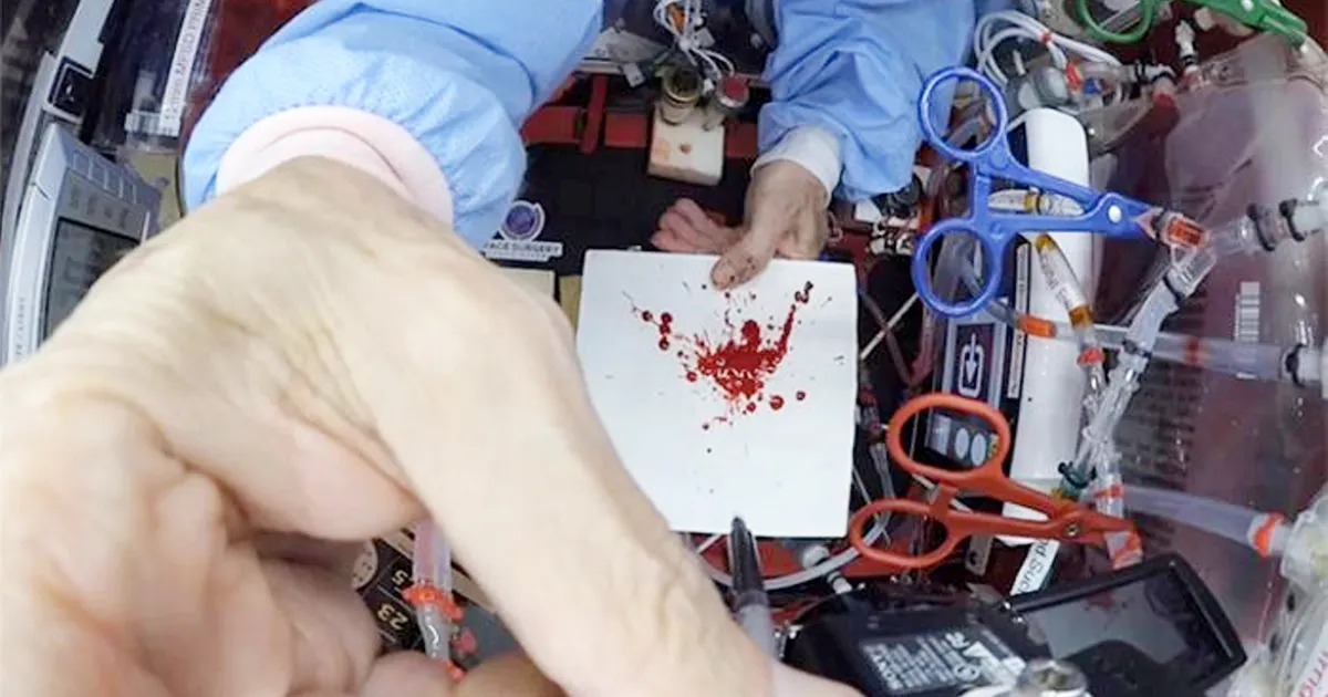 Murder in Space: মাধ্যাকর্ষণের অভাবে রক্তের কণাগুলো উড়ানের গা বেয়ে নীচের দিকে নামতে পারে না, পরিবর্তে পৃষ্ঠটান রক্তের ফোঁটাগুলির আকৃতি, আকার ধরে রাখে।