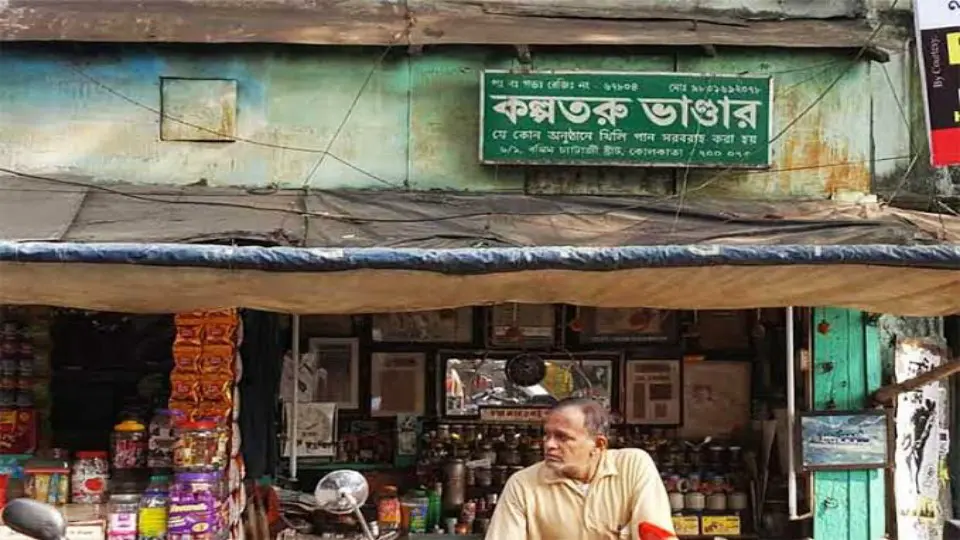 চুন খসানো অবয়ব, বাইরের দিকে দেওয়ালের পলেস্তারা উঠে গিয়েছে সেই কবেই, সারানোর কথাও কেউই ভাবে না। তার ওপরের সবুজ রঙের একটা পুরনো সাইনবোর্ডে লেখা দোকানের নাম। ‘কল্পতরু ভাণ্ডার’। বাইরে থেকে দেখলে অবশ্য এ দোকানের সঠিক পরিচয় সম্পর্কে আঁচ পাওয়া যায় না। হালফিলের বাহারি রং, খুশবু অথবা ঝিকিমিকি আলোর কোনও ছোঁয়াই নেই এখানে। বরং যেটা আছে তা ভীষণ রকম স্যাঁতস্যাঁতে। তবে বাইরের এই আপাত অন্ধকার পরতটা সরালেই মিলবে আলোর হদিশ, মিলবে অনেক ইতিহাসের খোঁজ। দোকানের ভিতরে দেওয়ালের দিকে তাকালেই চোখ আটকে যাবে। অজানা একটা আবেগ এসে পা চেপে ধরবে, আর অচিরেই শুরু হয়ে যাবে টাইম ট্রাভেল। সামনের দেওয়ালে টাঙানো একের পর এক বিখ্যাত সব ছবি। শুধু ছবি নয়, এ যেন আস্ত একটা সময়ের দলিল। কোনও ছবিতে স্পষ্ট দেখা যাচ্ছে অভিনেতা ভানু বন্দোপাধ্যায়কে, কোনওটাতে সর্বপল্লী রাধাকৃষ্ণন, কোনওটায় আবার স্বয়ং প্রধানমন্ত্রী ইন্দিরা গান্ধি। কলকাতার এই এক টুকরো পানের দোকানের সঙ্গে কীভাবে জড়িয়ে গেলেন এই বিখ্যাত মানুষেরা? কী এর আসল রহস্য?