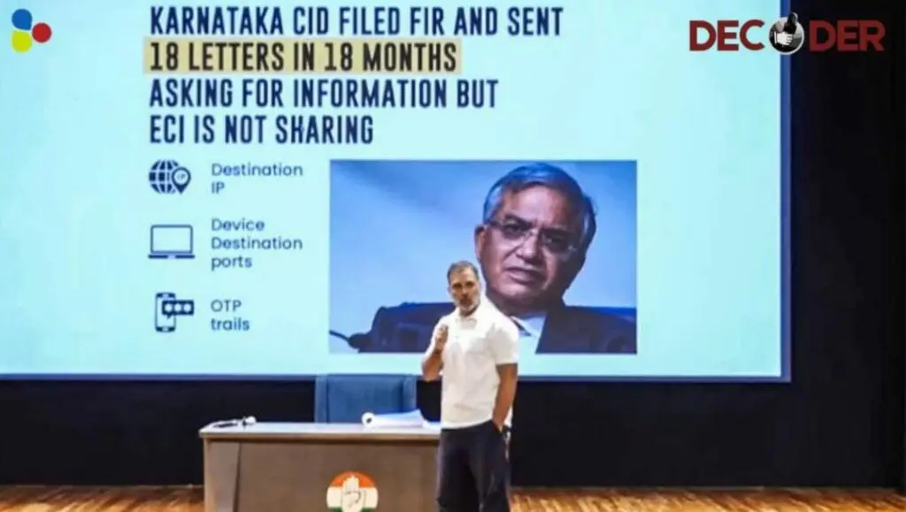 রাহুল গান্ধীর বক্তব্য অনুযায়ী, কর্নাটক সিআইডি (CID) নির্বাচন কমিশনকে অন্তত ১৮ বার চিঠি পাঠিয়েছিল। সেই চিঠিতে ভোটার তালিকা থেকে নাম মুছে ফেলার অভিযোগ খতিয়ে দেখতে গুরুত্বপূর্ণ নথি ও তথ্য চাওয়া হয়েছিল। এর মধ্যে ছিল—