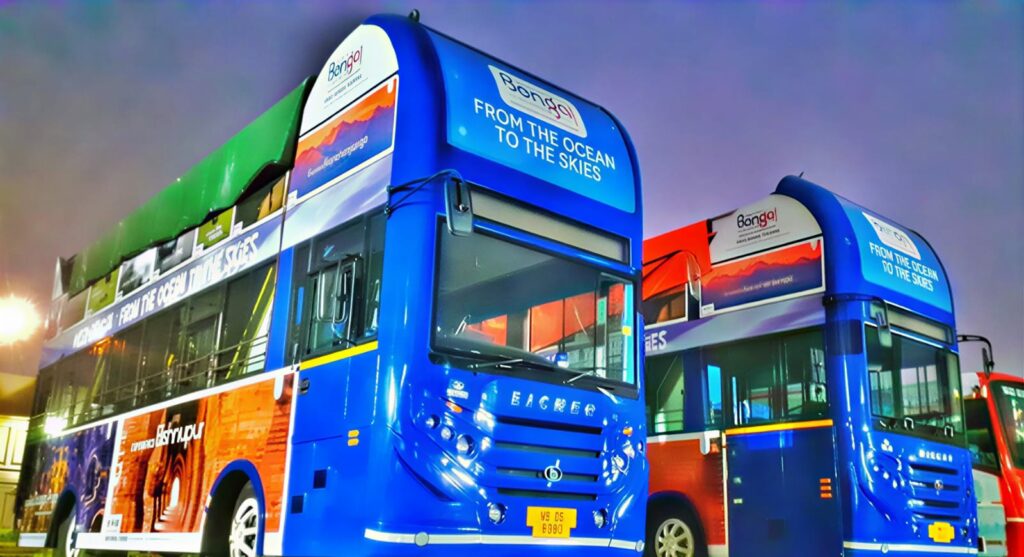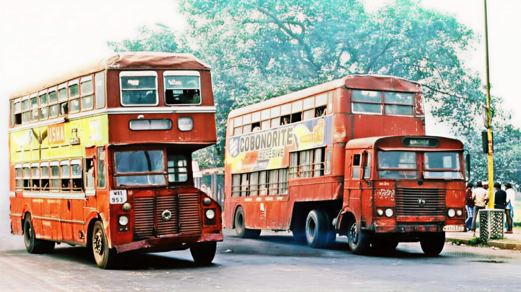 Double decker bus: এই বাসগুলির উপরের তলায় ছাদ ছিল না অর্থাৎ ওপেন টপ। গরমের দিনে যাত্রীরা ছাতা মাথায় বসে শহর দেখতেন। বর্ষায় কালো ছাতার সারি দেখে মনে হতো, ঠিক যেন একটা চলমান ছবি ঘুরে বেড়াচ্ছে শহর জুড়ে।